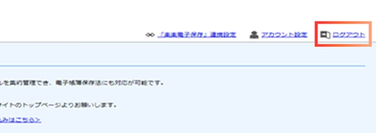 お客様のマイページ画面に入ります。右上の「ログアウト」で終了できます。