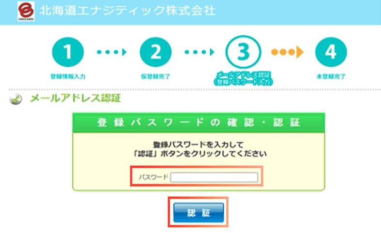 Step2で設定したパスワードを入力し、「認証」をクリックする